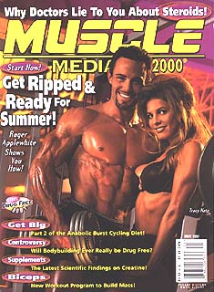 The May 1997 issue of Muscle Media 2000 has all the basics that you expect from the magazine. On the cover is natural bodybuilder Roger Applewhite of Houston, Texas, with fitness model Tracy Katz, of Coconut Creed, Florida. Since Muscle Media 2000 is published only 10 times a year, there was no April issue.