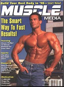 Features: How to build Absolutely fantastic abs! The art of bodybuilding Beef! A low fat, high protein food? You bet! Back from the Dead! New interest is resurrecting the deadlift! POINT, SET, MATCH Brad Minns is a winner in tennis, bodybuilding and life. The man behind the 'Mecca' Special Features: Denver Broncos linebacker Bill Romanowski knows how to give pain and take it away! 1997 Whey Protein conference update BEFORE SHE WAS NOT! Up close and personal with unlikely 'bodybuilder' Meredith Brown. Ballistic lifting techniques to get bigger and stronger. How to get it up - Drug Free! Departments How to make 1998 your year! For love to hate in 30 seconds flat The latest research on Creatine's effect on metabolism, rest between sets, and Ginseng supplementation. Questions & Answers More info on the new 'Androgens', Prozac and bodybuilding. Also, Glycerol to increase blood volume, and more bodybuilding news. The power of power cleans, losing fat to gain shape, building 'cleavage', and more on Magnesium. The lowdown on Ephedrine, Synephrine, MCT's and Herbal Phen-Fen.