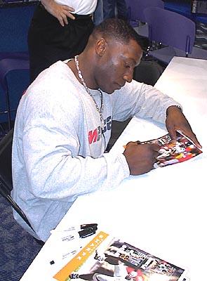 The football star of the Denver Broncos (although he has been traded now) was signing autographs at the EAS booth.