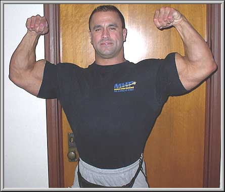![]() Chris is a top-level N.P.C. National Competitor who weighs 240 lbs in contest condition and up to 275lbs in the off-season. He has won such titles as the Teenage Nationals, Mr. Connecticut and Mr. Northeast. His latest competitions include a 4th place in the super-heavyweight division at the '99 N.P.C. Junior Nationals and a first time appearance at the highly competitive '99 National Championships. Chris last competitive contest was the 2002 NPC Junior Nationals, in which he placed second in the Super Heavyweights class. |
