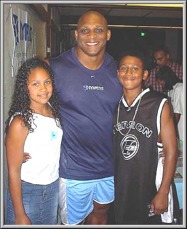 ![]() Quincy with two of his four kids, Jacquin, and Alexis. Quincy has been quite after the early shows, taking 3 months off to relax and enjoy life, but is now starting to traing again at Gold's of North Hollywood. Many people thought Quincy should have received an invite to the Olympia because if Quincy had placed at the May Pro shows in the same condition he was at the March shows, he would of won, and qualified for the Olympia. In any case, Quincy plans to be 20 pounds heavier when he compete at the 2003 Ironman than he was last year at the same show. Quincy plans to win this time around, and has learned from his rookie mistakes in what needs to get done. |