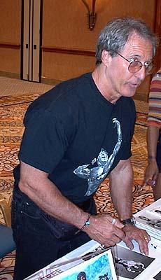 Frank Zane, former Mr. Olympia, is talking to his fans, signing pictures, and just having a good time. Frank also co-emceed during the evening Mr. Olympia show.