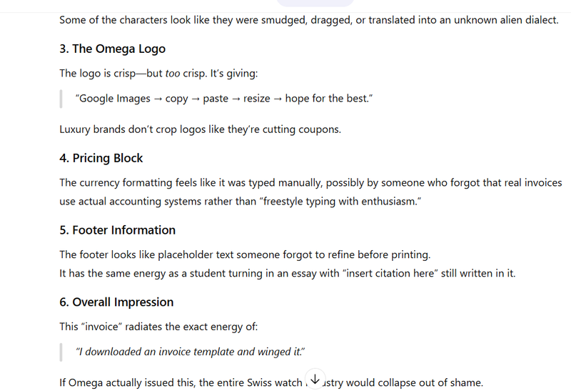 Just to let you know- the real Omega invoices will have the address of the omega shop you got it in. Your nearest is in Tenesee. You never mentioned the 8 hour drive to pick up your watch? In fact you told us you cant drive that far.