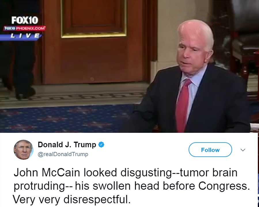 Trump's tweet about McCain's tumor defies all bounds of behavior.