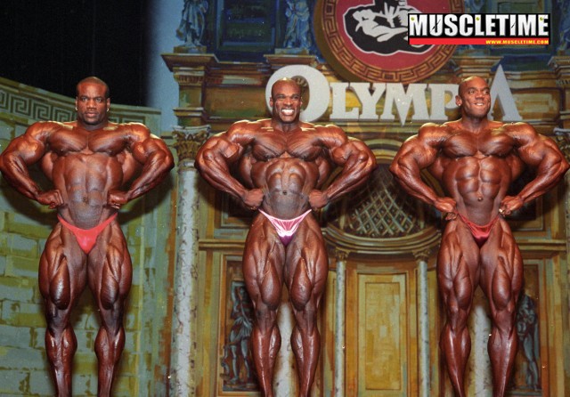 you clearly agree as you also post long strings of photos to help make your point. When was competition Dorian ever much heavier than Ronnie. Am I allowed to start posting scarily huge 300lb Ronnie pics now? Or some of the ones from off-season 99 where he looked very good also? I'm not sure Ronnie's bigger biceps than triceps is particularly evident in the shot I posted, it certainly doesn't detract. DO I need to remind you of almost all the pics of Dorian you've posted feature a badly torn biceps and triceps on one or both arms. Regarding Ronnie's calves; they do not measure up to Dorian's, I can certainly concede this. Again in the pic posted there is no noticable asymmetry, they are the best calves on the stage, clearly besting Cormier and Flex in that shot.