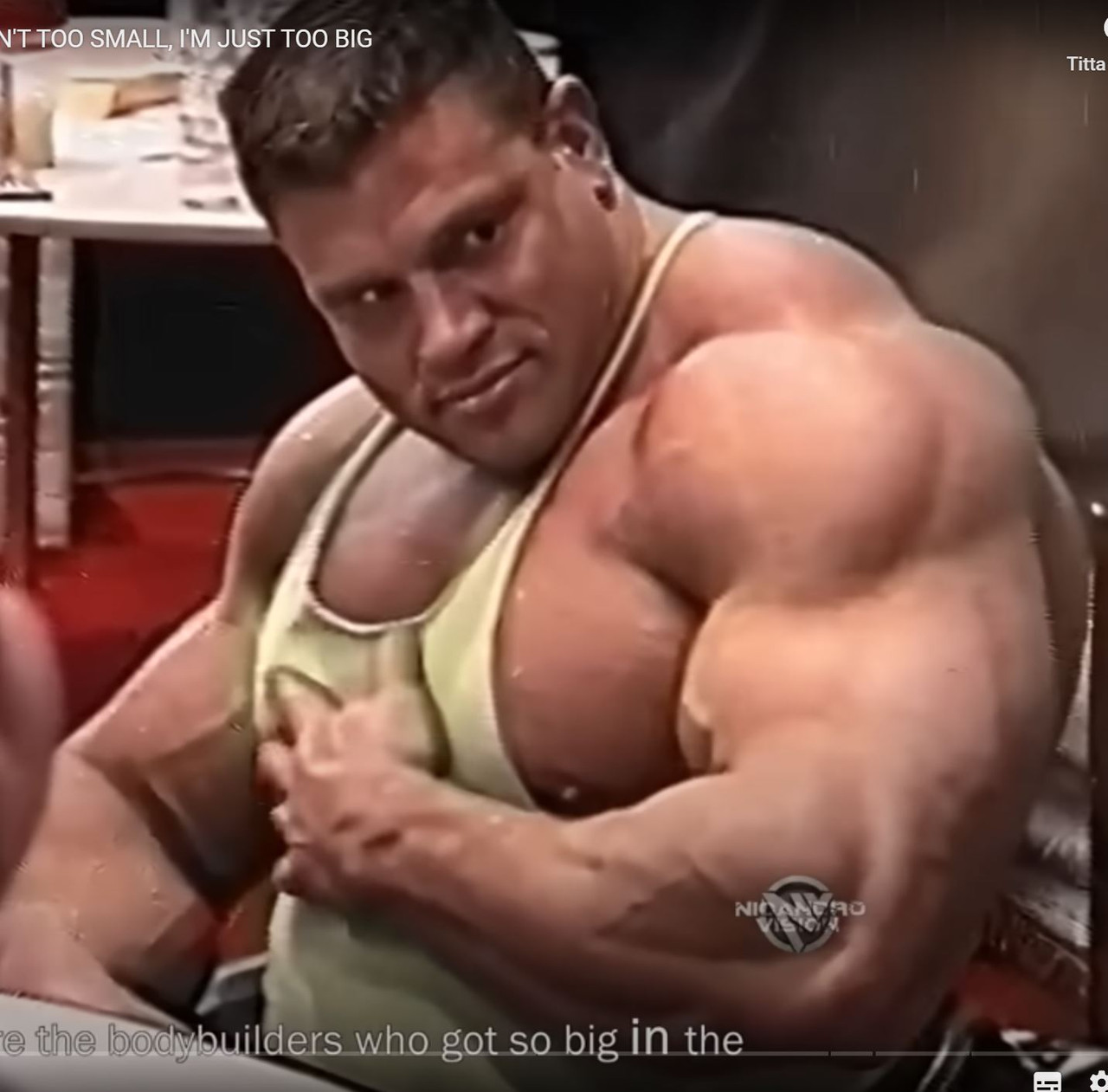I'd be interested to see what condition his stomach is in , being that his arms actually look lean and in shape.