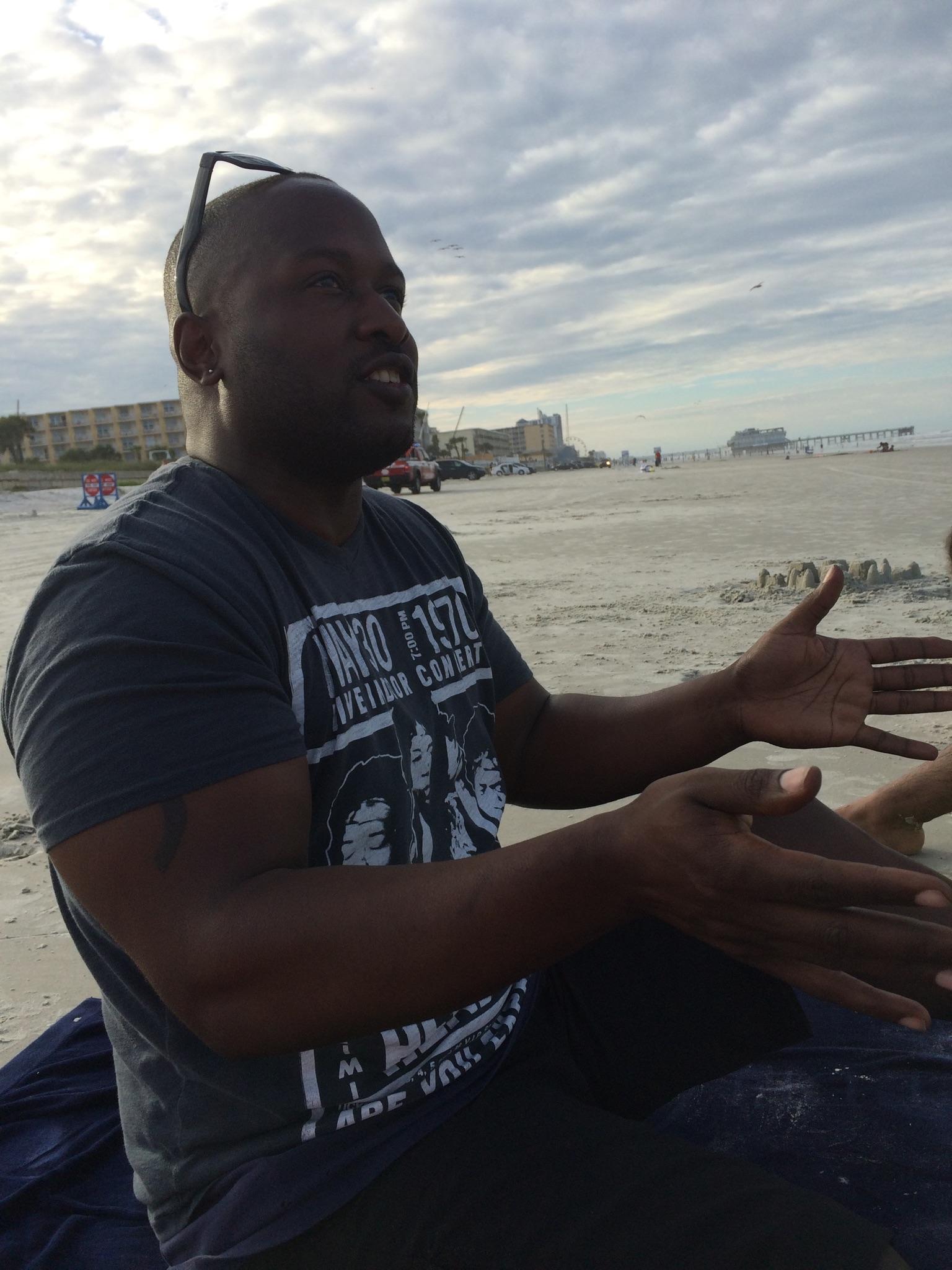 Don't people typically take their tops off at the beach to tan? Kinda pointless for a black dude.