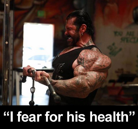 When I watched the first interview I did with Rich at the 2012 Mr. Olympia contest, I noticed he was out of breath.  His girlfriend Amy Waz added me to Facebook, and she said the same thing.  She also said Rich had a history with recreational drugs for pain relief, and - well, I think everything Amy said is sort of a matter of public record at this point, so it's not exactly a violation of the privacy of Rich for me to repeat it.