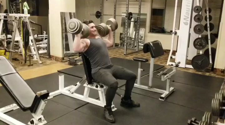 Eddie Hall is going a foot lower than you notice he doesnt bend his wrist and his elbows are tucked below his shoulders. His wrist a are shoulder level and as are the horizontal dumbells . Your elbows are shoulder level and your wrist and the dumbells are at the top of your head without a wrist turning dip.