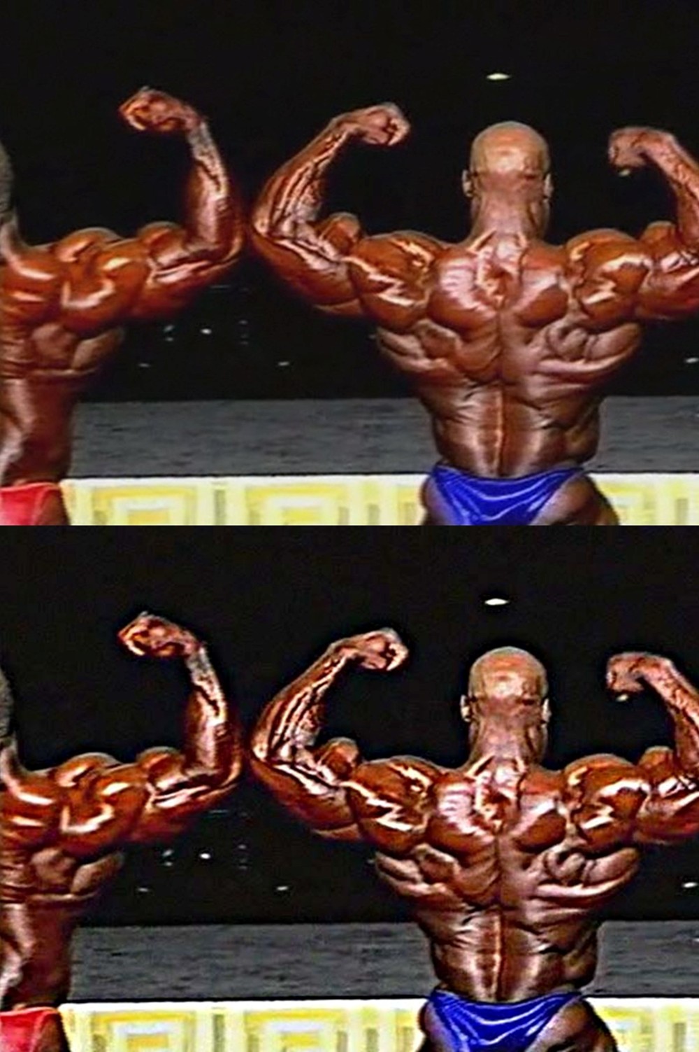 Not true at all. Both Ronnie and Flex were better in 1998. As for Chris, I agree with you. Jay in his 2001 shape would have either defeated or lost by points to Ronnie 1999. Thge version of Ronnie that could defeat him with straight-first scores would be 1998. No way no how did Cutler look better in 1999 than in 2001: he was both bigger and sharper in 2001.