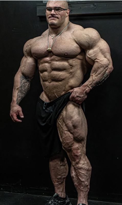 Samson is looking sharp but a bit small at the guest posing, Hadi and Derek's legs both look bigger and then there is this collosus whose legs have more tributaries than the nile and whose belly pops out like a third trimester but who otherwise beat the rest of the pack on sheer muscularity.