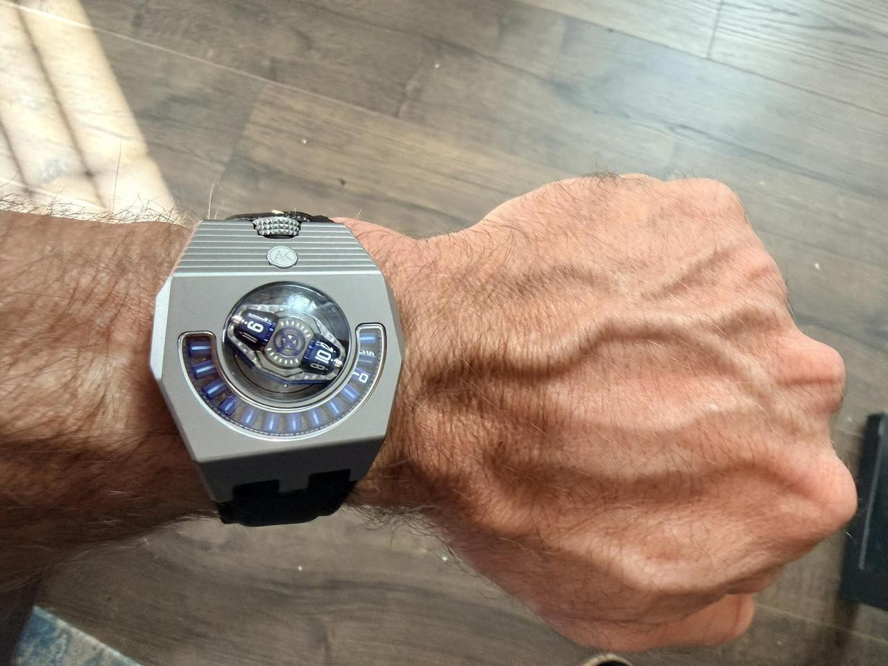 This motherf-er's wearing a Star Trek communicator on his wrist -