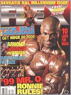 Flex Magazine considers themselves the bible of hardcore bodybuilding. Each month, Flex visits and speaks with the champions of bodybuilding at their gyms, at contests, and at their homes, gathering information and photographs, Flex brings you their latest strategies, and the competitive goals that they apply to further develop their title-winning physiques. Flex is the official magazine of the IFBB Bodybuilding Federation. On the cover is Ronnie Coleman, with Arnold Schwarzenegger in an inset, as well as Minna Lessig. | ![]() |