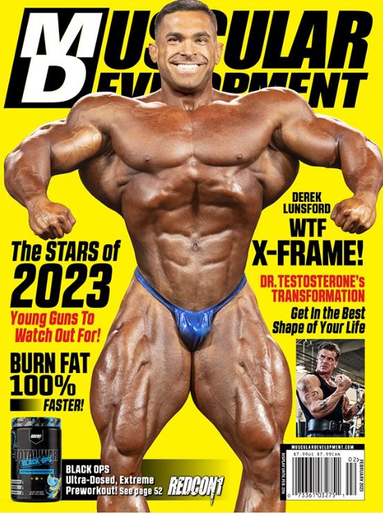 ![]() Derek Lunsford was a young man whose physique screamed potential from the start. After turning pro at the 2017 NPC USA Championships, the man on this month’s cover wasted no time and scored his first pro win just a week later in the 212 division of the Tampa Pro. Some wrote it off as beginner’s luck and assured us all he would get a reality check a few weeks later at the Mr. Olympia. Instead, the 24-year-old vaulted into the coveted top five at the 212 Olympia behind legends of the division such as Flex Lewis, Ahmad Ashkanani, Jose Raymond and former Olympia champion David Henry. In the two years that followed, Derek would place runner-up, firmly establishing himself as one of the best 212 bodybuilders alive. After a peaking error caused him to slip down to fourth place in 2020, Lunsford enlisted the services of the man who had been responsible for 20 Olympia wins including seven from Phil Heath alone, Hany Rambod. The partnership paid off, and in October of 2021 Derek Lunsford became the 212 Olympia champion On the cover is Derek Lunsford |
