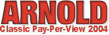 The Arnold Classic Men's Bodybuilding Competition on Pay Per View, in 2004? Yes, ladies and gentlemen, that is true. This year, all the unlucky ones who won't be able to get into the sold out Veteran's Auditorium in Columbus, Ohio, will be able to get the show live, starting at 7pm Eastern Standard Time, or 4pm Pacific Standard Time.