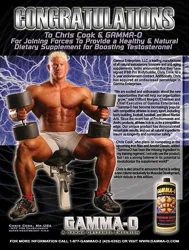 - It is always nice when Chris Cook stops by to say hello. For those who don't know, Chris Cook signed with Gamma-O Products at the 2005 Olympia Weekend. Chris also signed with Muscular Development Magazine around the same time. Here is Chris taking a look at his latest Gammo-O advertisement.