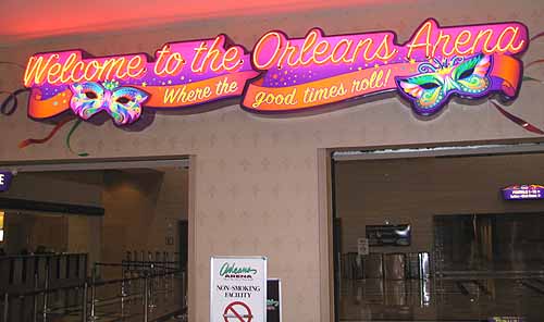 After staying on the strip at the Mandalay Bay for the last 5 years, I decided to spend a weekend at the Orleans, as a trial run for the Olympia Weekend. Leaving the airport, and passing the strip, away from the billion dollar resorts and bright lights, we traveled down Tropicana Blvd to the Orleans. Needless to say, the people in my group were not impressed. The way to the Orleans on Tropican had nothing to see, except some graffiti when we went under the railroad tracks, and a few porn places, especially Deja Vu, which is very close to the Orleans. When we finally saw the sign, after about a mile or so, we were very happy.
