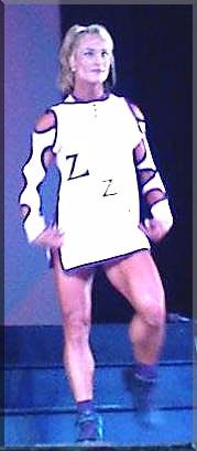 Lena Johannesen in her costume in the evening fitness program routine.s