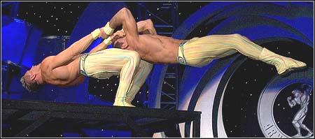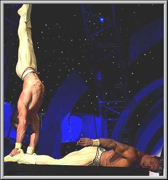 The Alexis Brothers were absolutely amazing here at the 2004 Arnold Classic. They have been working at Cirque du Soleil, but made a special appearance here. They have an amazing ability of strength and these pictures don't do justice to what they do, but it gives you a sense.