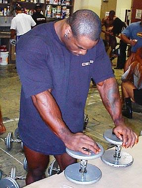 Chris all smiles as he wins the Pro Ironman Contest for the second year in a row, but more importantly, defeated his friend Ken 'Flex' Wheeler in a very hard fought battle.