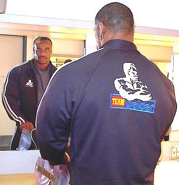 Chris came prepared to be Ironman show, physically and mentally. This is backstage, preparing for his prejudging rounds.