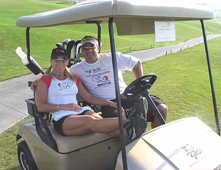 Monica and hubby having fun in the cart