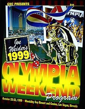 The 1999 Olympia Weekend Program Book featured all of the Mr. Olympia and Fitness Olympia competitors, plus info on the Olympia Expo.