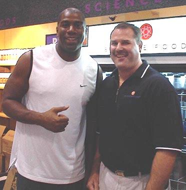 Magic Johnson was the honoured guest at the Olympia Expo, and could not resist going to the Science Foods booth to get a performance drink. Magic posed with Brad Vilen, Science Foods Sales Manager.