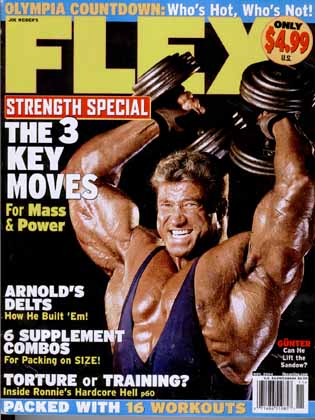 Flex Magazine considers themselves the bible of hardcore bodybuilding. Each month, Flex visits and speaks with the champions of bodybuilding at their gyms, at contests, and at their homes, gathering information and photographs, Flex brings you their latest strategies, and the competitive goals that they apply to further develop their title-winning physiques. On the cover is Gunter Schlierkamp. | ![]() |