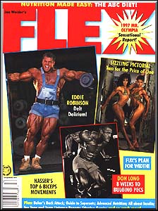 Flex Magazine considers themselves the bible of hardcore bodybuilding. Each month, Flex visits and speaks with the champions of bodybuilding at their gyms, at contests, and at their homes, gathering information and photographs, Flex brings you their latest strategies, and the competitive goals that they apply to further develop their title-winning physiques. Flex is the official magazine of the IFBB. Eddie Robinson, Don Long, Lisa Lowe and Kathy Aregullin are the cover.
