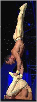 The Alexis Brothers were absolutely amazing here at the 2004 Arnold Classic. They have been working at Cirque du Soleil, but made a special appearance here. They have an amazing ability of strength and these pictures don't do justice to what they do, but it gives you a sense.