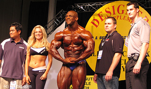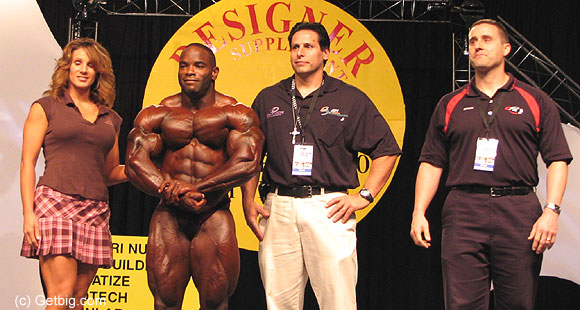 Lonnie Teper, the emcee, congratulating Toney on his win