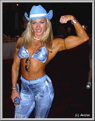 Debbie Kruck was at the Met-Rx booth, who informed me that contrary to all of the rumors out there, she is not pregnant, she is not a lesbian, she has not had facial surgery, and she is not married nor together with Lee Apperson. She did want to inform all that she does make her and a few of her friends their own outfits and costumes for the fitness shows.