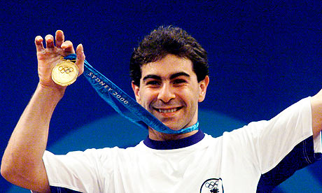 Bulgaria's Galabin Boevski shows off his gold medal in the men's weightlifting 69kg division at the Sydney Olympic Games. Photograph: Oleg Popov/Reuters