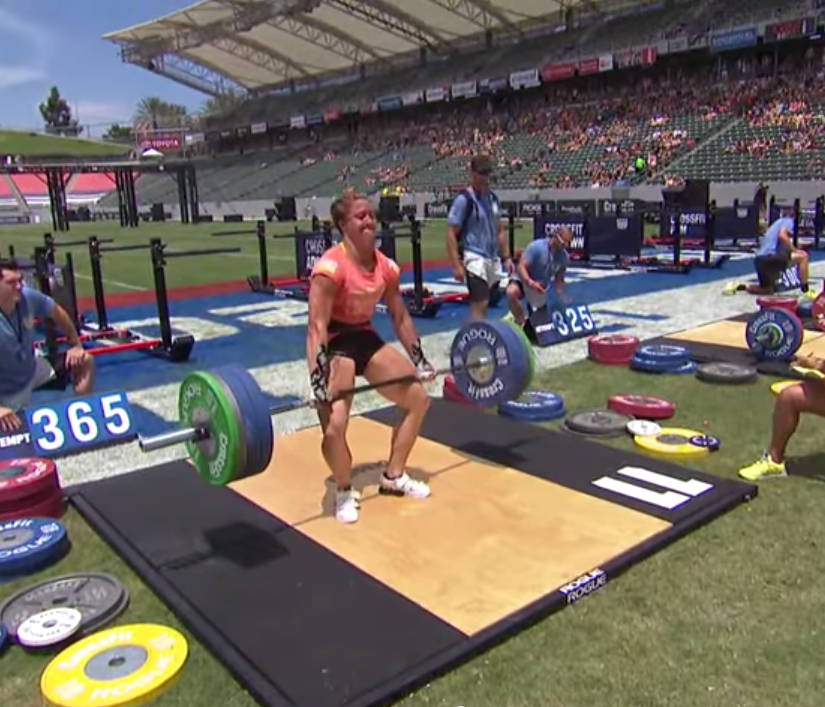 "The infamous 365 lb hitched pull from a broad that apparently lives within a stone’s throw of me- this was her third attempt, pulled 75 seconds after her second attempt and within the rules set forth by CrossFit.  Best part?  If she actually learned to deadlift rather than pulling like it was a clean, half of the people reading this would be forced to commit ritual suicide because of what she’d be pulling."