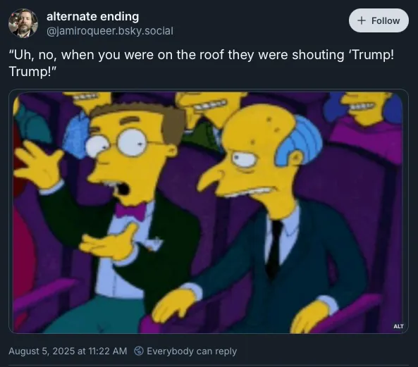 B_B_C only trusts the same main stream media that told him Trump was gonna go to prison before the election and Kamala was gonna win.
