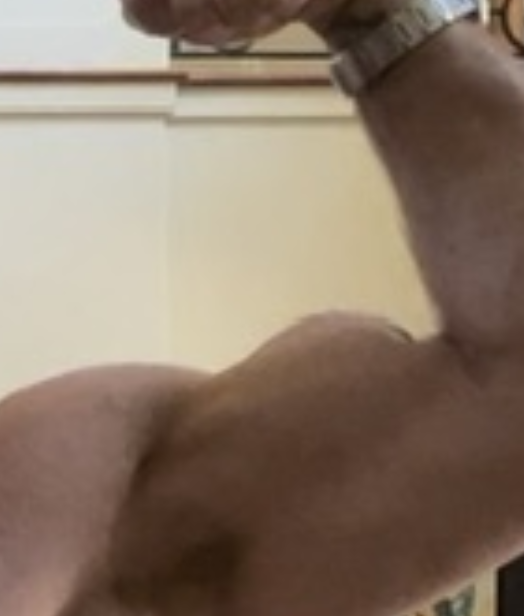 Our stud is back to his old tricks. If you zoom in you can see the bicep peaks are blurry. Bhanky so tricksy with the photoshop
