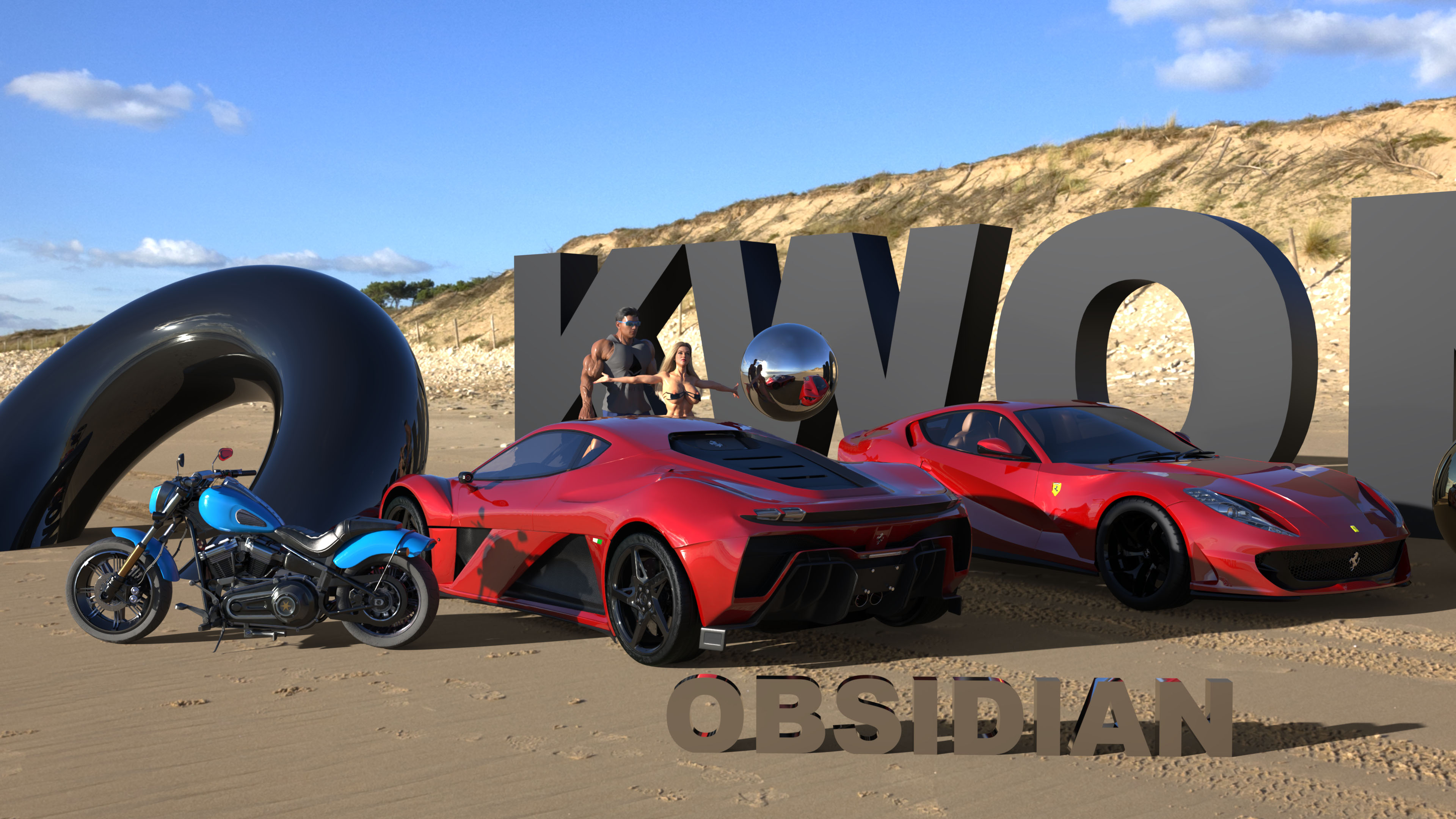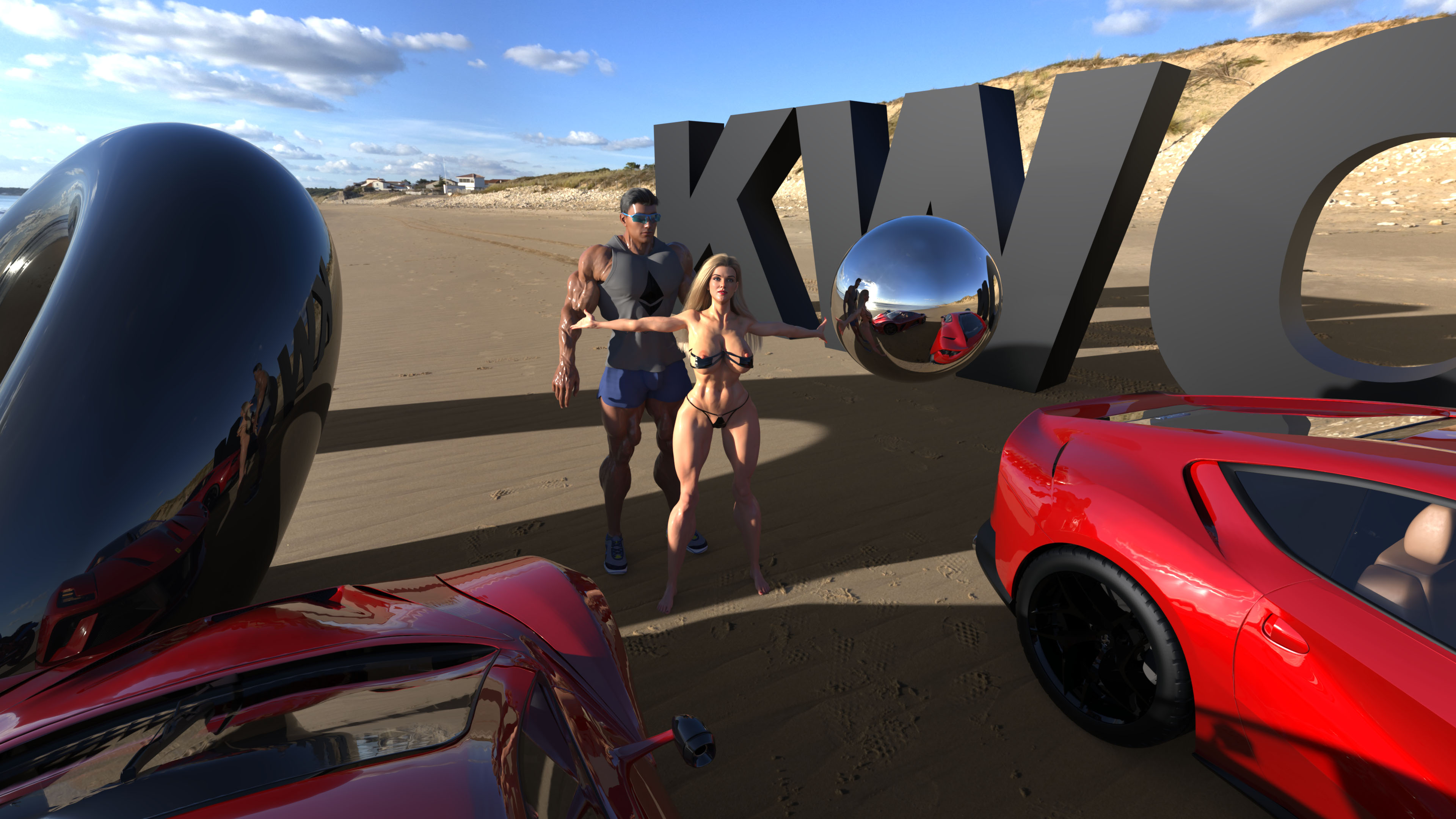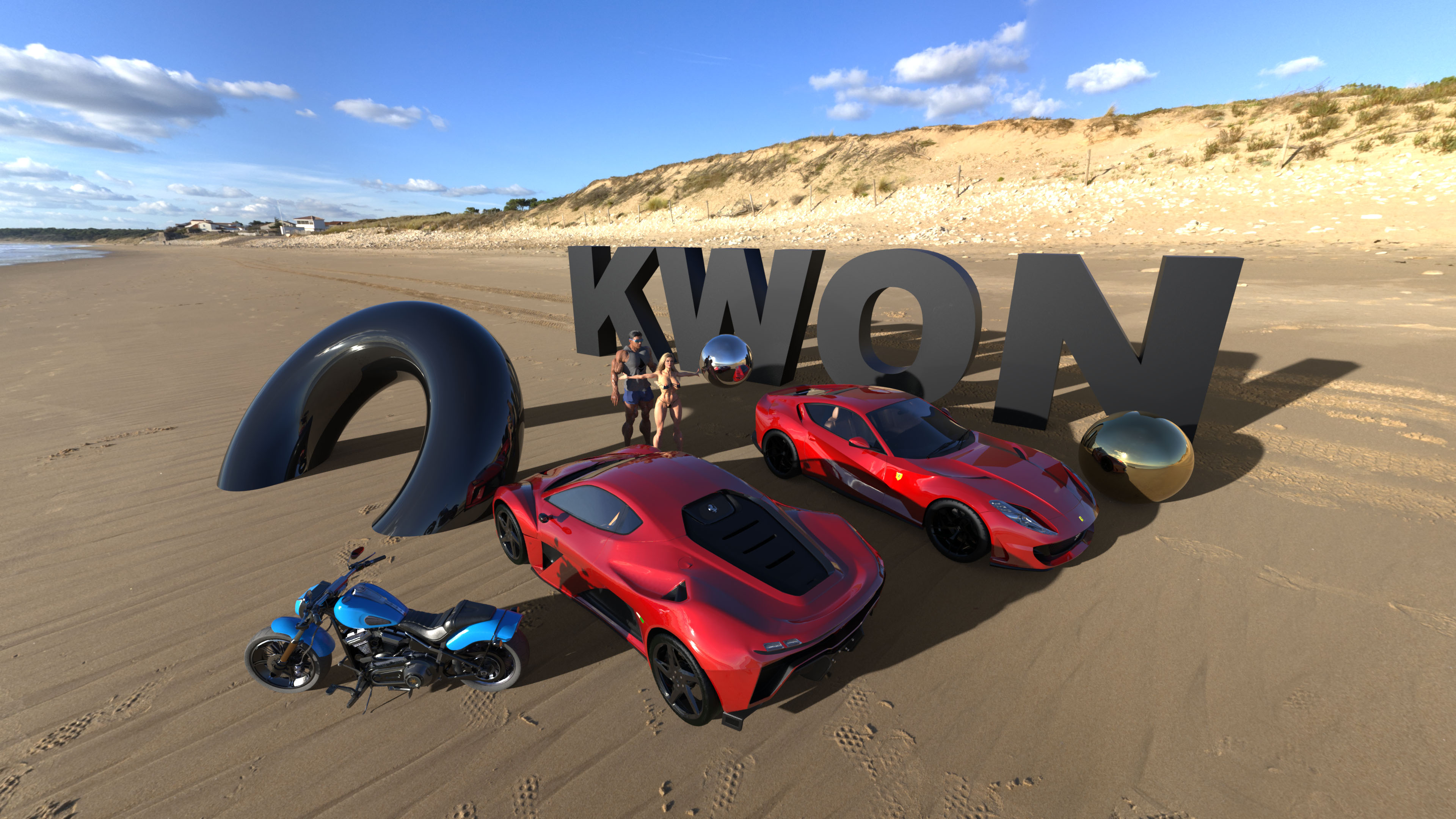 The tires are obviously too clean. With effort sand and debris can be added so it looks more integrated with the scenes. These were just quick studies to illustrate the ray traced shadows and reflections.