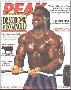 ![]() Peak Training Journal's motto is 'the ultimate source of hardcore bodybuilding'. This magazine features articles that supposedly contain hardcore information about training, supplements, and other controversial issues; items that the more popular magazines will not touch. This magazine is definitely not for everyone, but if you are a serious training machine, this most likely will peak your interest. On the cover is Dave Hughes, photographed by Irvin Gelb.