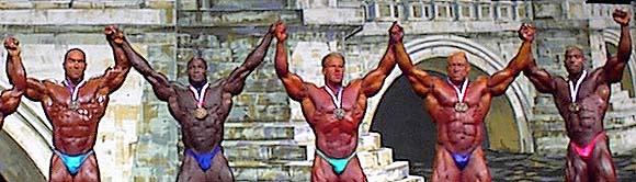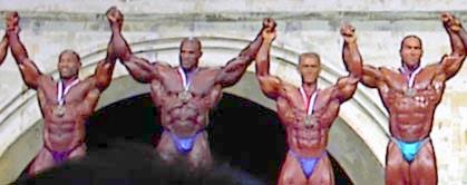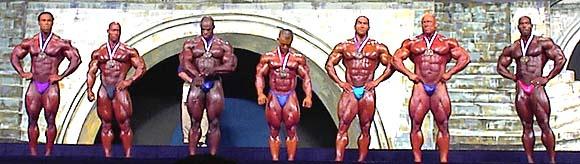 Bodybuilders are waiting for their 2000 Mr. Olympia medal.